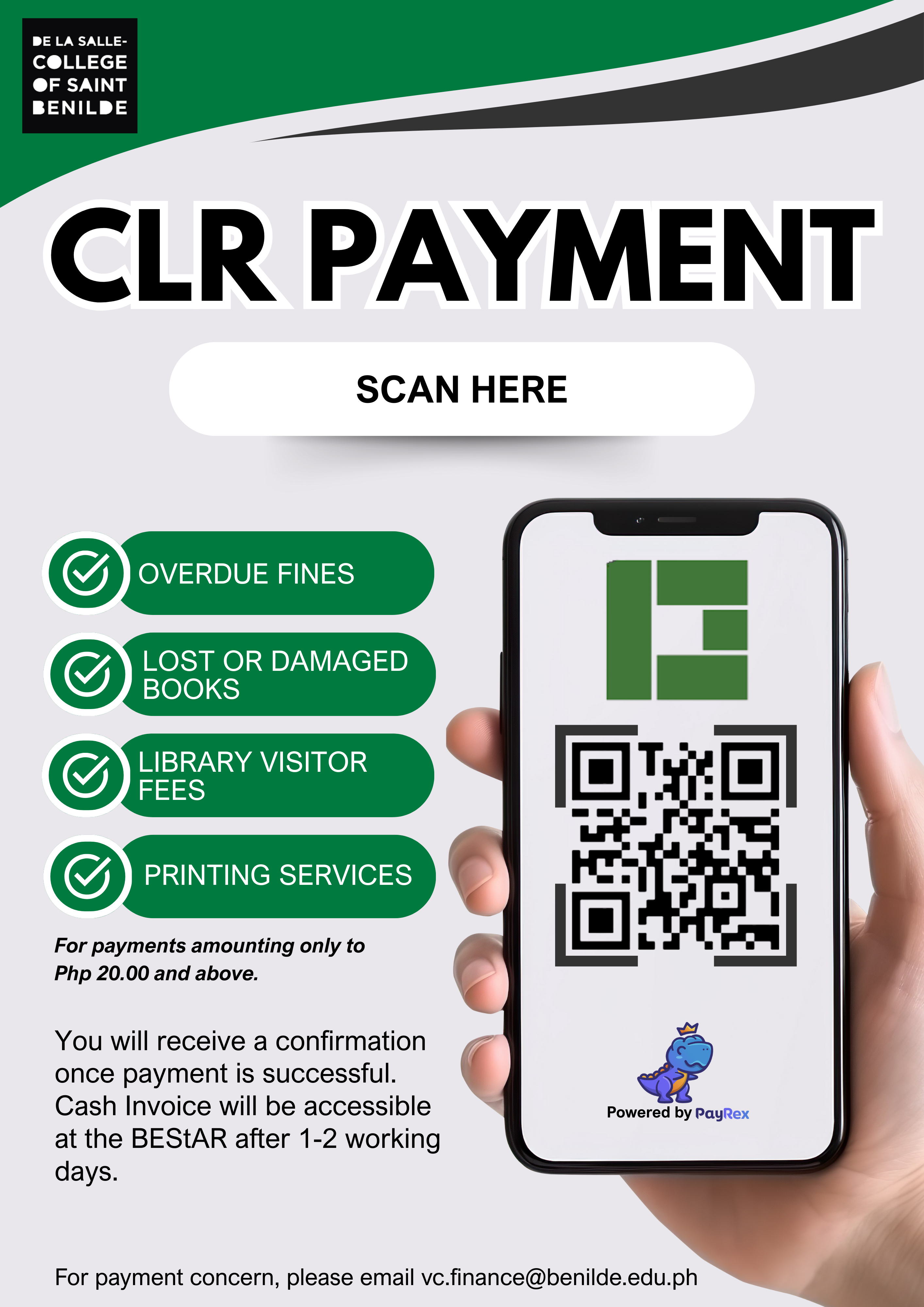 For payment confirmation inquiries and issuance of official receipt, please contact our Finance Department via email vc.finance@benilde.edu.ph or send them a text message at 0920-4227597 (SMART) and 0917-6216985 (Globe).